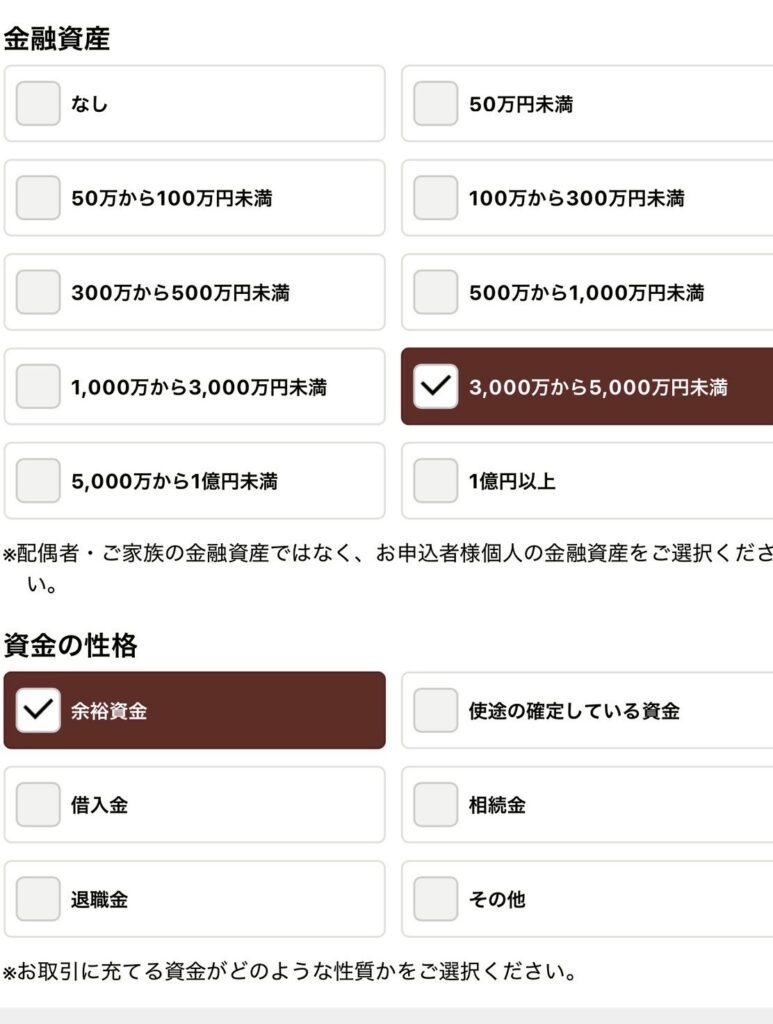 基本情報や資産状況、投資経験の有無などが問われるので、画面に従って入力してください。