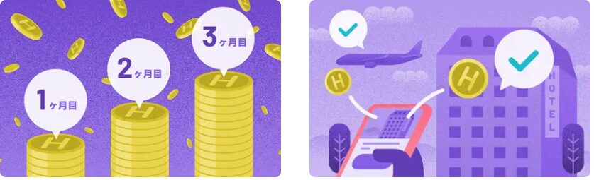 ランクが上がると、宿泊割引もあるので、自分でコツコツつみたて貯金するよりも、HafHを利用した方がお得です。