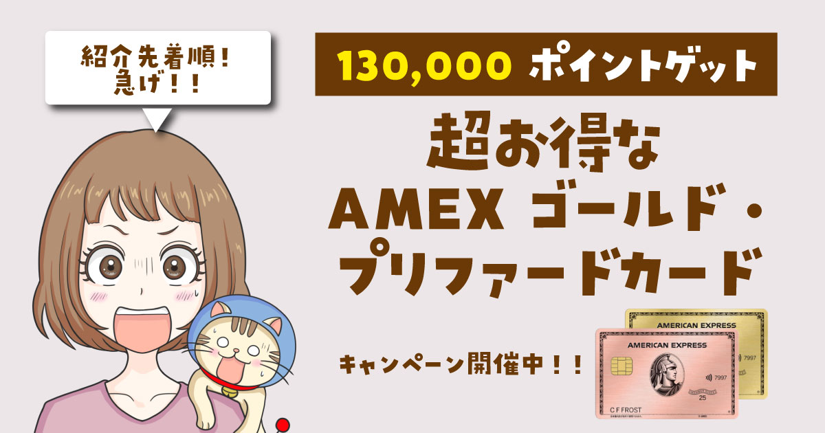 みんな聞いて!AMEXゴールド・プリファードカードで、130,000ポイントもらえる爆益キャンペーンをやっているの!