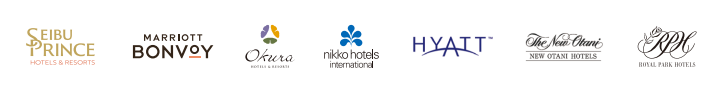 対象ホテルはマリオットやヒルトン、ハイアット、日航など、豪華なホテルが盛りだくさん。