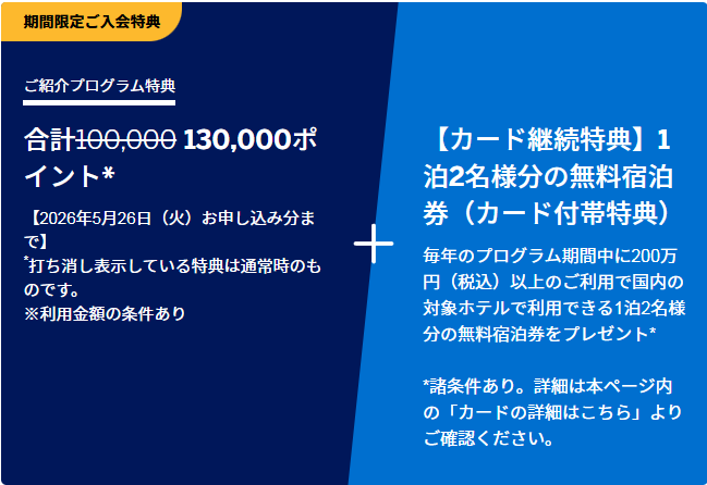 しかも紹介リンクから入会すると最大130,000ポイントがもらえるチャンス。